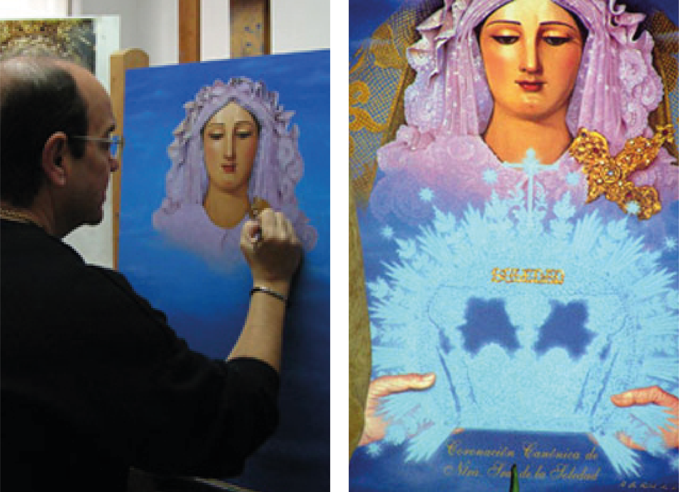 Esta obra pertenece al pintor Hipólito Viana Lobato en su época azul y se usó también como referencia para el Cartel de la Coronación de la Santísima Virgen de la Soledad. Está pintado en tabla preparada con Gesso, mide 70 x 50 y la técnica empleada es óleo.