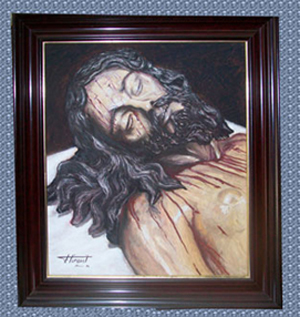 Es una obra realista en óleo sobre lienzo de 58,5cmx67cm que representa un plano medio de tronco y cuerpo de nuestro Titular el Cristo Yacente.