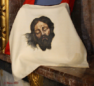 Verónica, según la tradición cristiana, fue la mujer que, que durante el Viacrucis, tendió a Cristo un velo, lienzo o paño (el paño de la Verónica, lienzo de la Verónica o velo de la Verónica) para que enjugara el sudor y la sangre. En la tela quedaron milagrosamente impresas las facciones del Redentor el Santo Rostro.